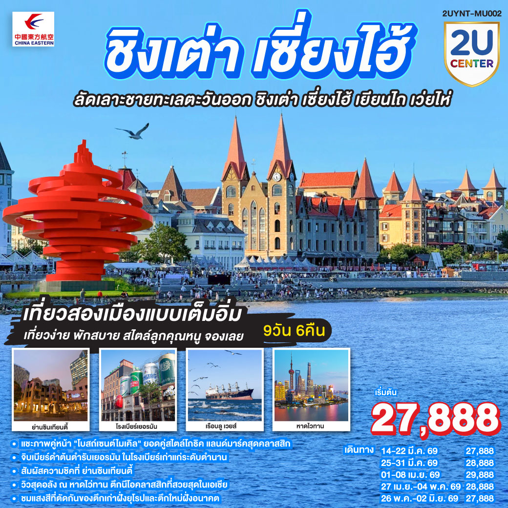 กรุงเทพฯ (สนามบินสุวรรณภูมิ) – เซี่ยงไฮ้ (สนามบินเซี่ยงไฮ้ผู่ตง) (MU548 : 01:55 - 07:10) เยียนไถ (สนามบินเยียนไถเผิงไหล) (MU5587: 09:25 - 11:05) – เช็คอินจิตรกรรมหาดทรายทอง - ท่าเรือชาวประมง |